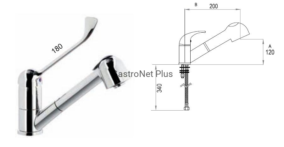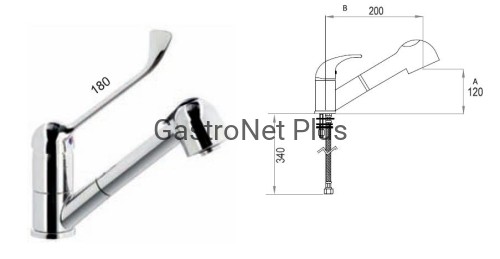 - bateria umywalkowa jednootworowa łokciowa z wyciąganym prysznicem