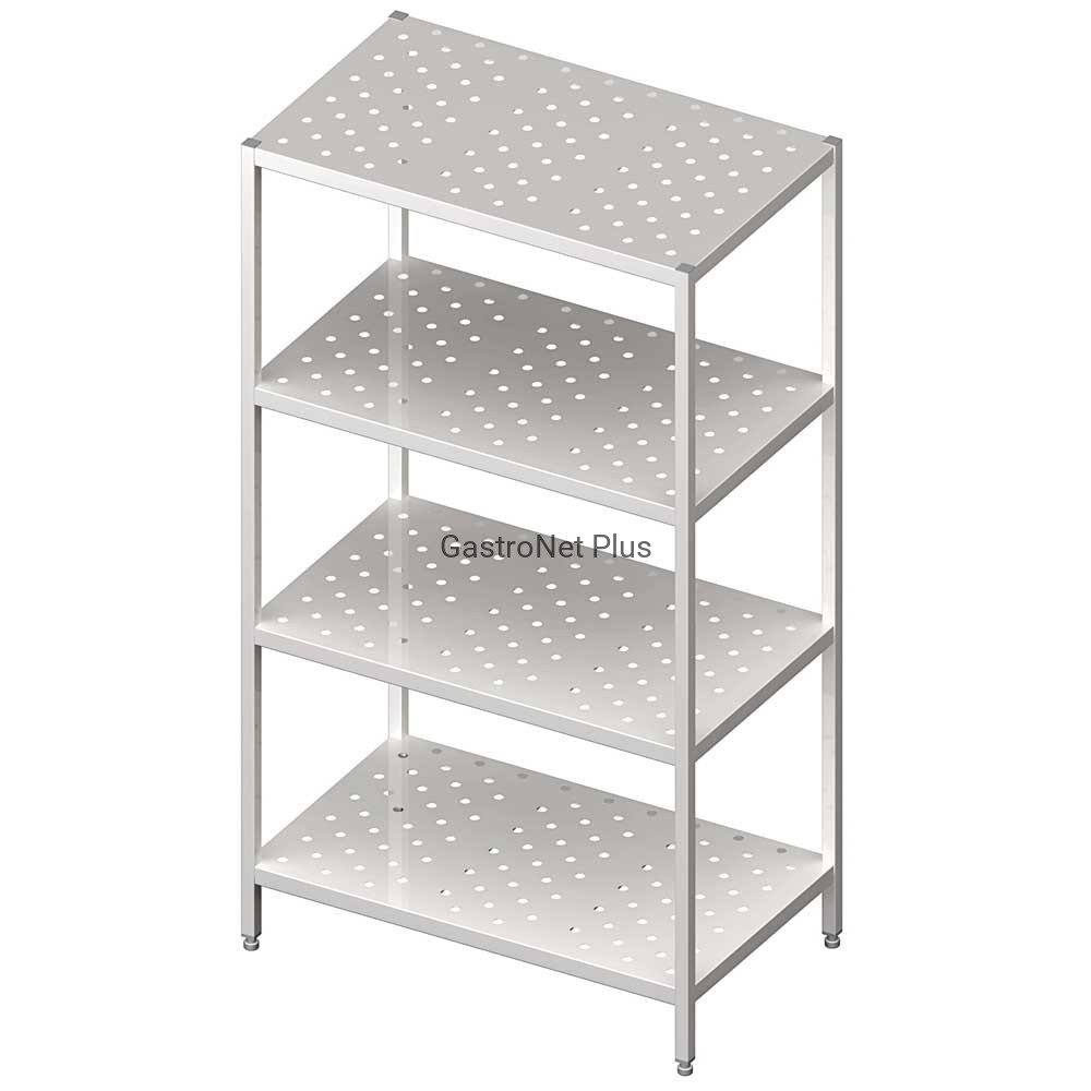 Regał magazynowy skręcany 900x700x1800 mm wykonany z wysokiej jakości stali nierdzewnej. Wysyłany w formie rozłożonej do samodzielnego montażu. Nogi wykonane z profilu 30x30 mm, łączone do półek za pomocą śrub. Półki perforowane. Maksymalne obciążenie na półkę 70 kg/metr kwadratowy.