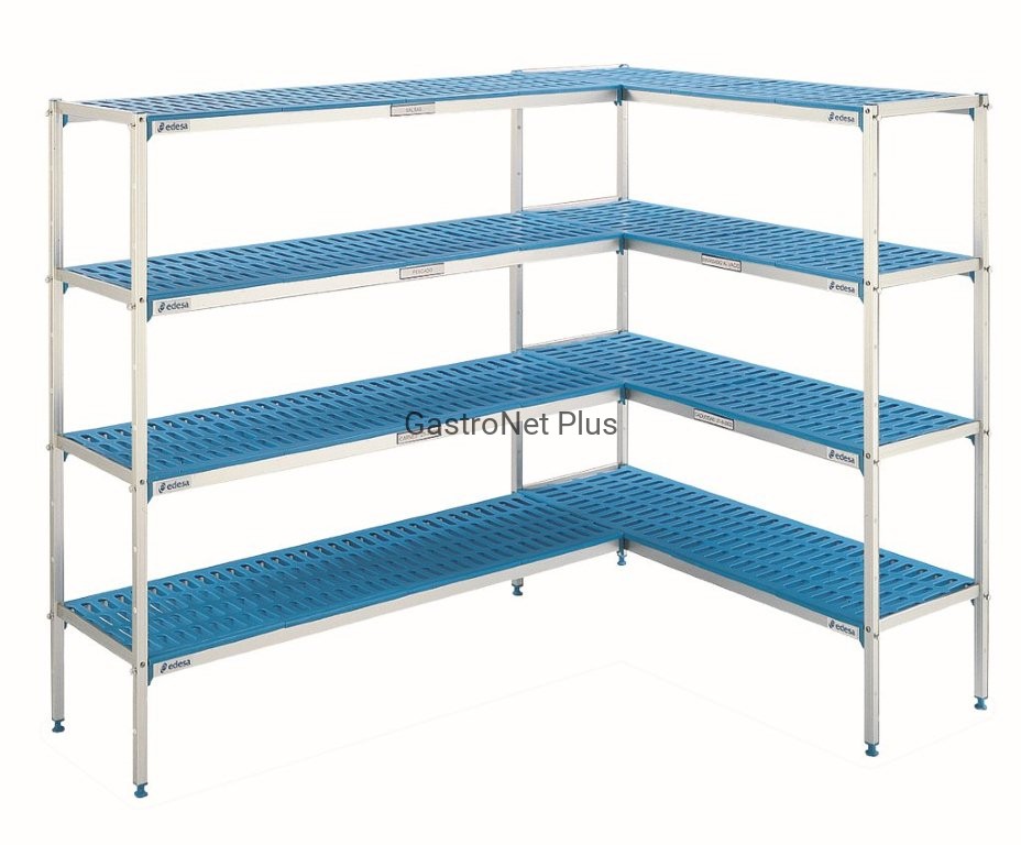 Regał z anodyzowanego aluminium z półkami przeznaczonymi do kontaktu z żywnością. Przystosowany do różnorodnego zastosowania, zwłaszcza w pomieszczeniach o wysokich wymogach sanitarnych – idealny do komór chłodniczych i mroźniczych. Łatwy montaż. Podpory regałów posiadają otwory co 270 mm, co pozwala na modyfikowanie standardowych zestawów i zwiększanie ilości półek w bardzo prosty sposób. Regulowana wysokość nóżek pozwala na dostosowanie do nierówności podłoża. Regał posiada 5 półki o szerokości 400 mm.