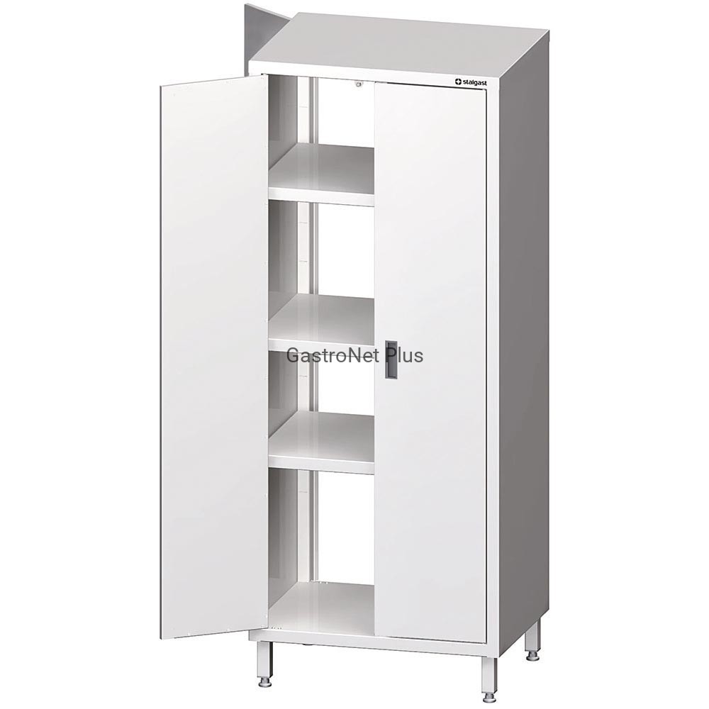 Szafa przelotowa 700x700x2000 mm wykonana z wysokiej jakości stali nierdzewnej. Drzwi skrzydłowe. Dwie przestawne półki, środkowa zamontowana na stałe. Opcjonalnie możliwy montaż zamka.