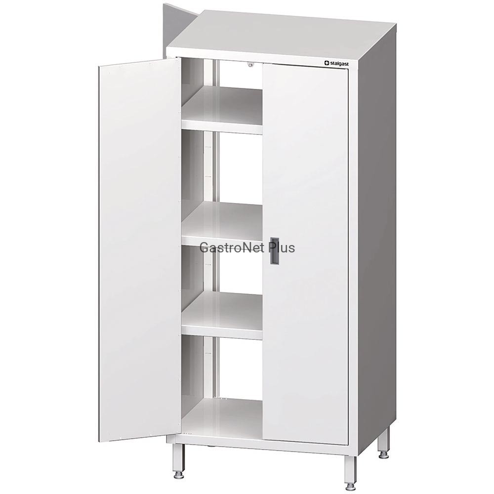 Szafa przelotowa 900x600x1800 mm wykonana z wysokiej jakości stali nierdzewnej. Drzwi skrzydłowe. Dwie przestawne półki, środkowa zamontowana na stałe. Opcjonalnie możliwy montaż zamka.
