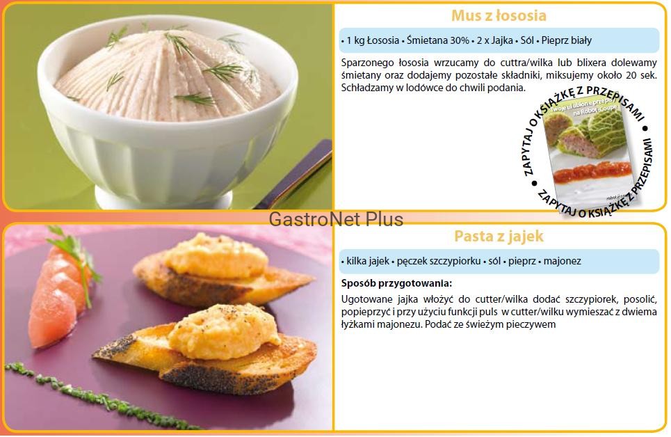 - R301 jest wyposażony w pojemnik 3,7l z ergonomicznym uchwytem, nóż gładki, przystawkę do szatkownicy wyposażoną w 2 otwory wsadowe, 1 o kształcie nerkowym 104 cm² i pojemnik cylindryczny ø=58 mm
