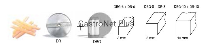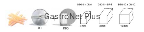 Należy zawsze połączyć je z tarczą do krojenia w plastry DR, zgodnie z żądaną grubością frytek.